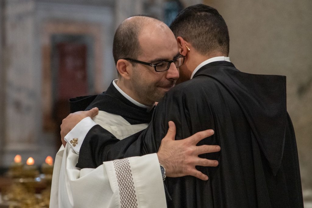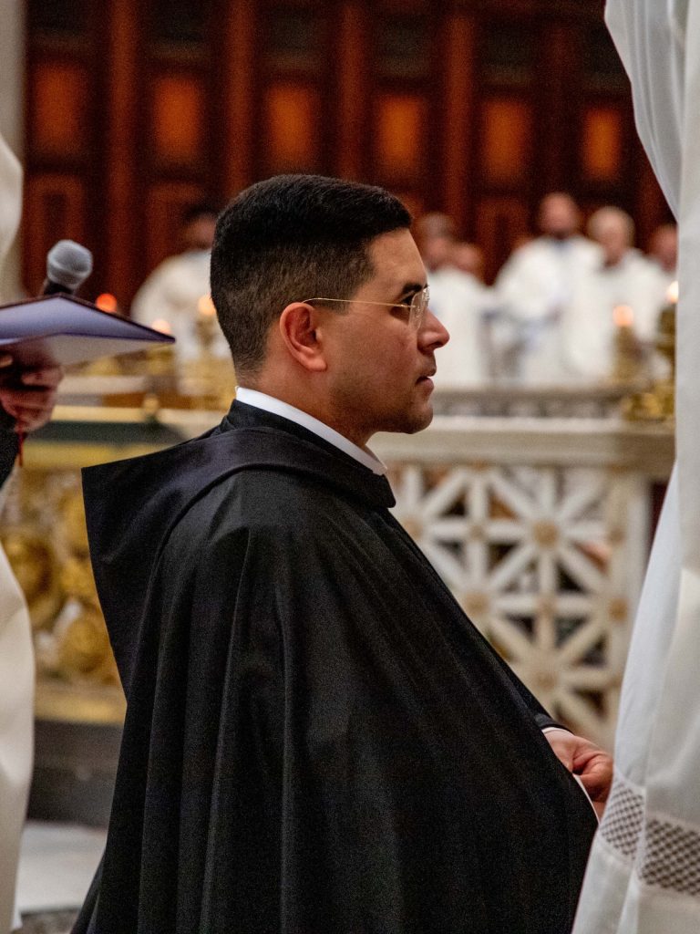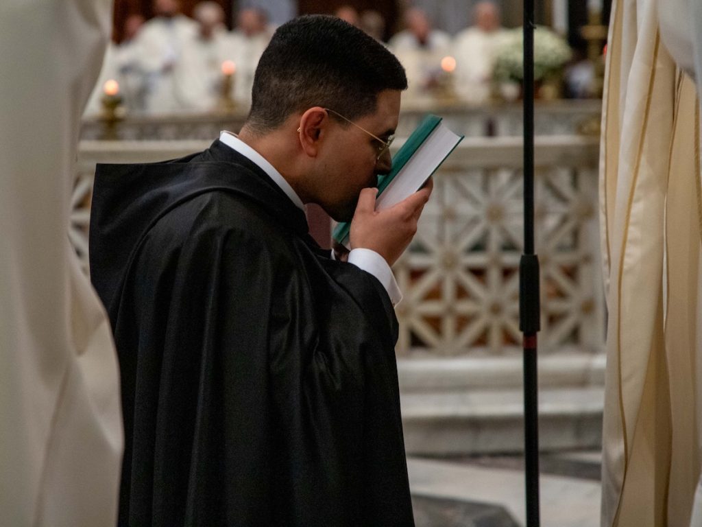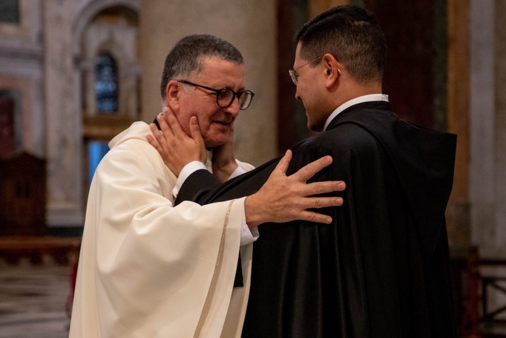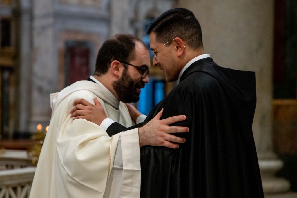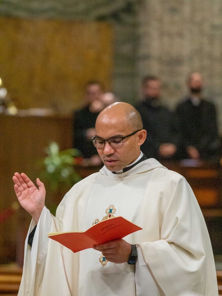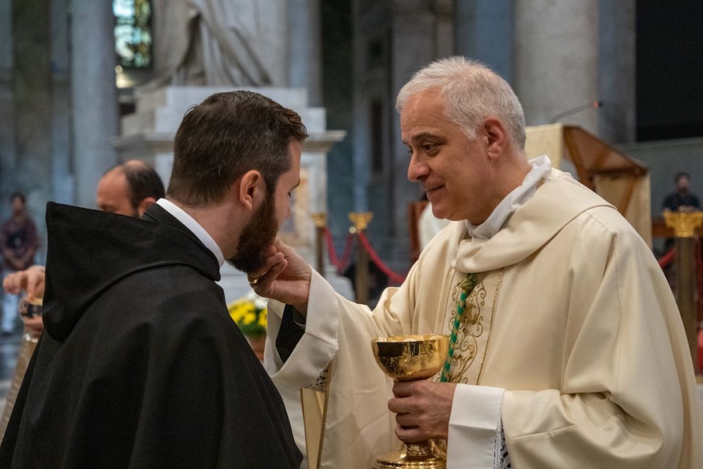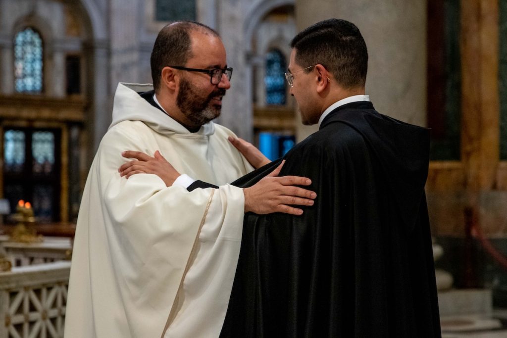 Oggi, con la Professione religiosa, il nostro fratello Vinicius entra a far parte della famiglia monastica benedettina di San Paolo fuori le Mura. Accettando liberamente di seguire il Signore più da vicino e di vivere più strettamente unito a Lui e ai fratelli per il tramite dei tre voti religiosi – che pronuncerà secondo la formulazione tipicamente monastica: stabilità, conversione dei costumi e obbedienza – Vinicius manifesterà pubblicamente il suo desiderio di cercare Dio nella e con la nostra comunità monastica, mettendo in pratica il duplice comandamento dell’amore al Signore e al prossimo, sia all’interno del cerchio fraterno sia al di fuori di esso.