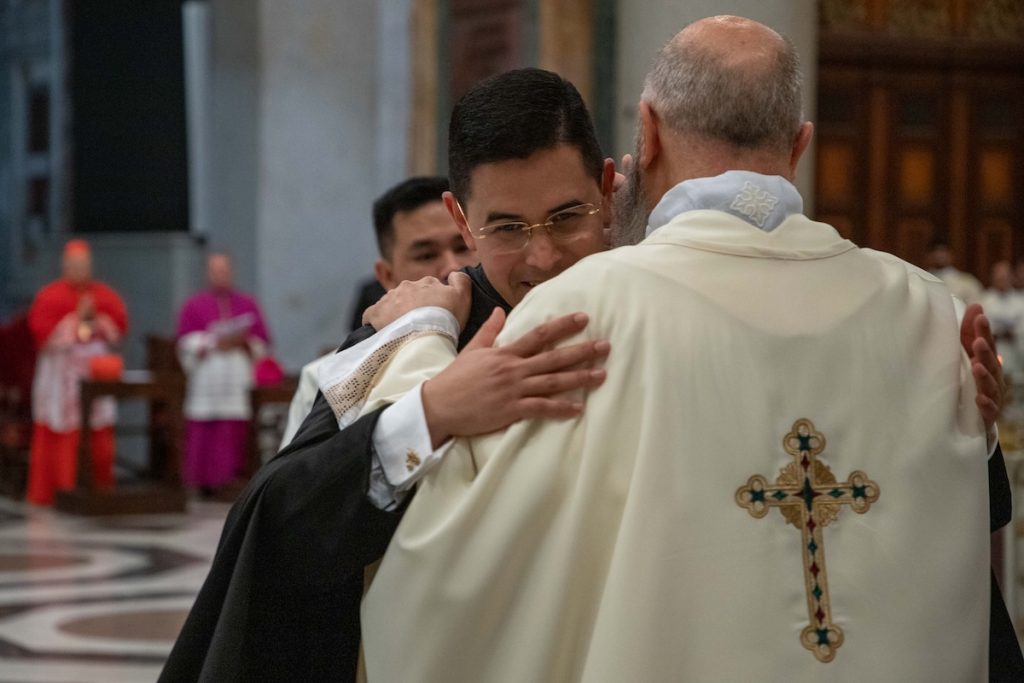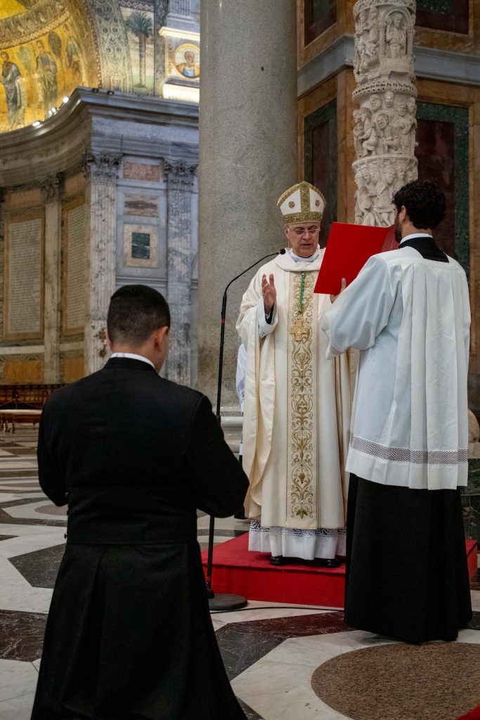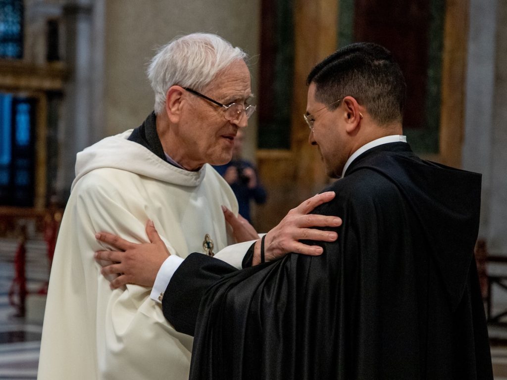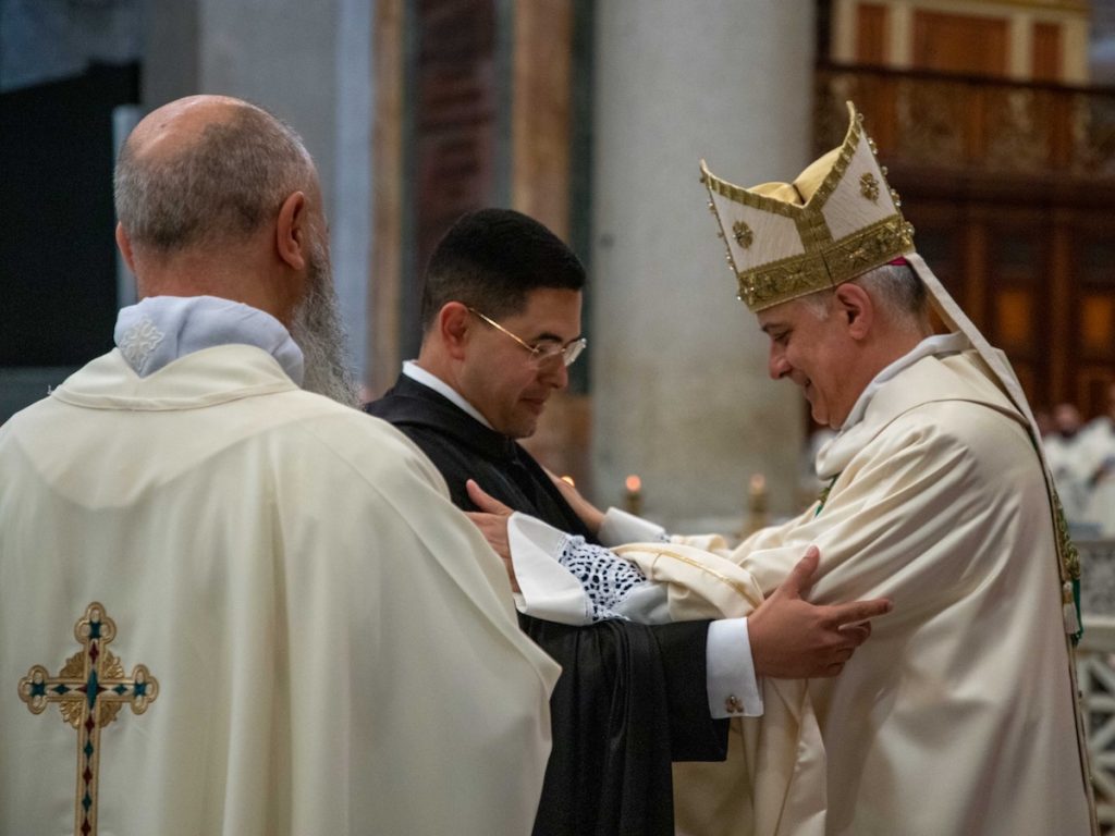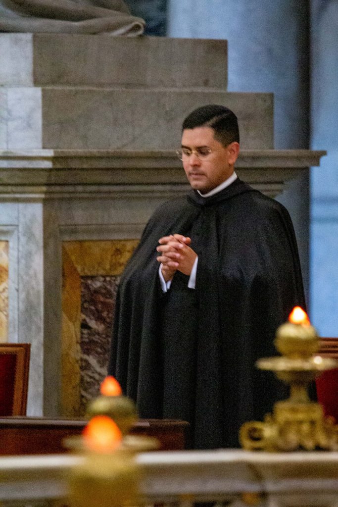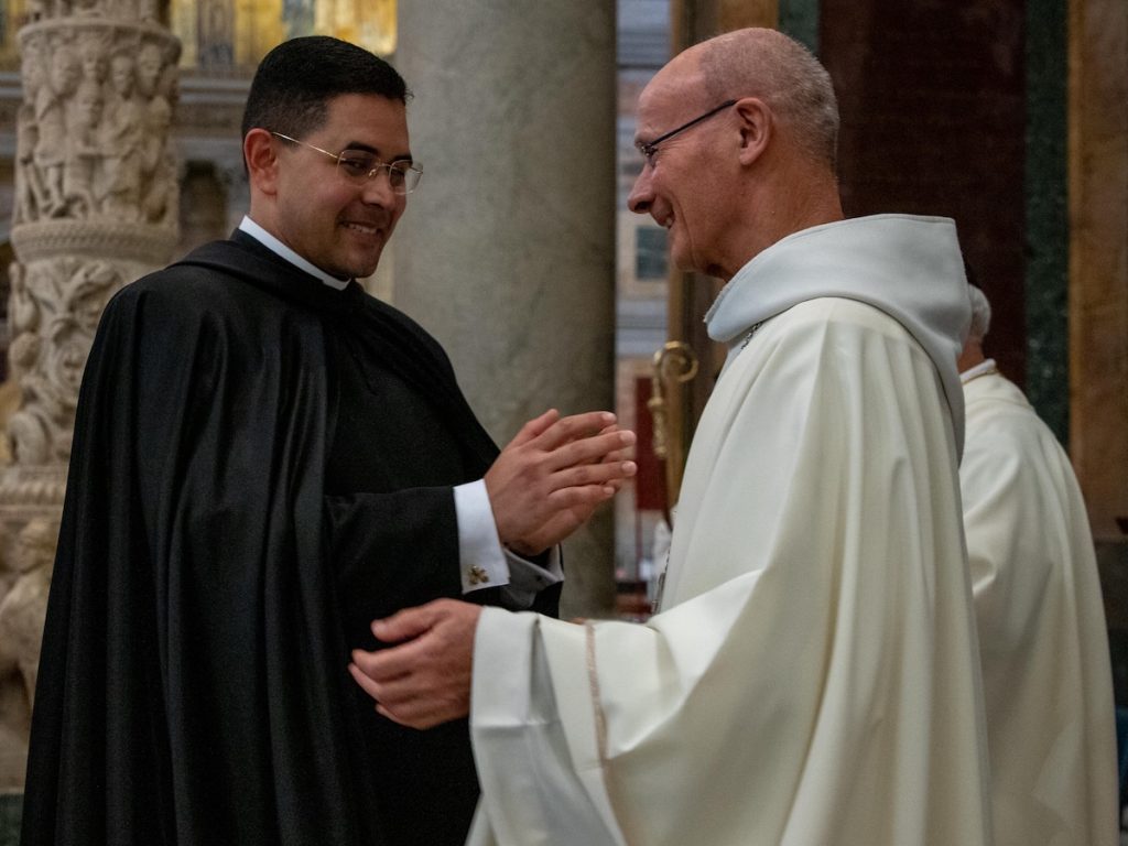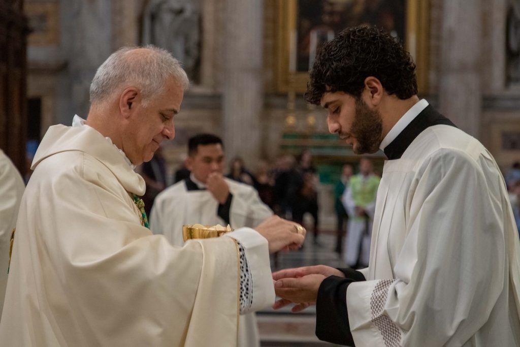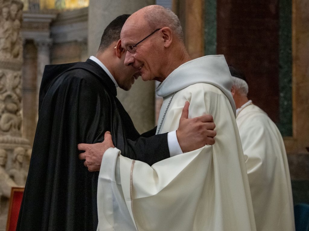 Oggi, con la Professione religiosa, il nostro fratello Vinicius entra a far parte della famiglia monastica benedettina di San Paolo fuori le Mura. Accettando liberamente di seguire il Signore più da vicino e di vivere più strettamente unito a Lui e ai fratelli per il tramite dei tre voti religiosi – che pronuncerà secondo la formulazione tipicamente monastica: stabilità, conversione dei costumi e obbedienza – Vinicius manifesterà pubblicamente il suo desiderio di cercare Dio nella e con la nostra comunità monastica, mettendo in pratica il duplice comandamento dell’amore al Signore e al prossimo, sia all’interno del cerchio fraterno sia al di fuori di esso.