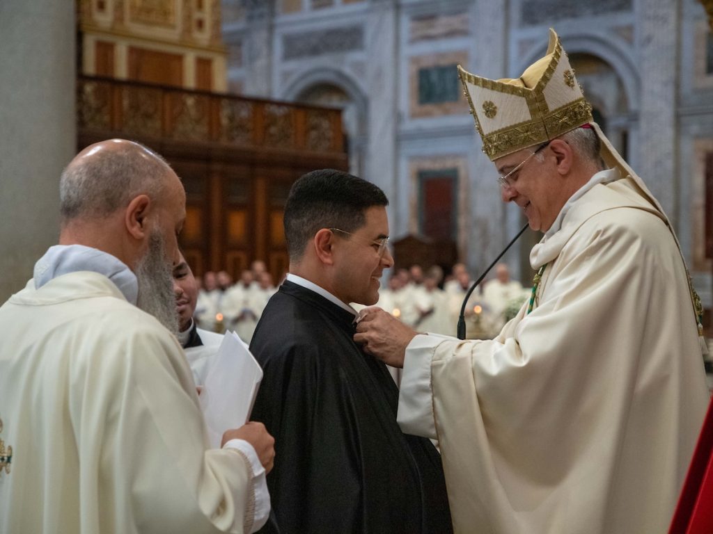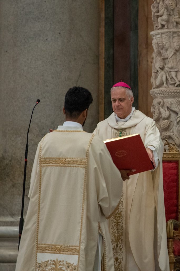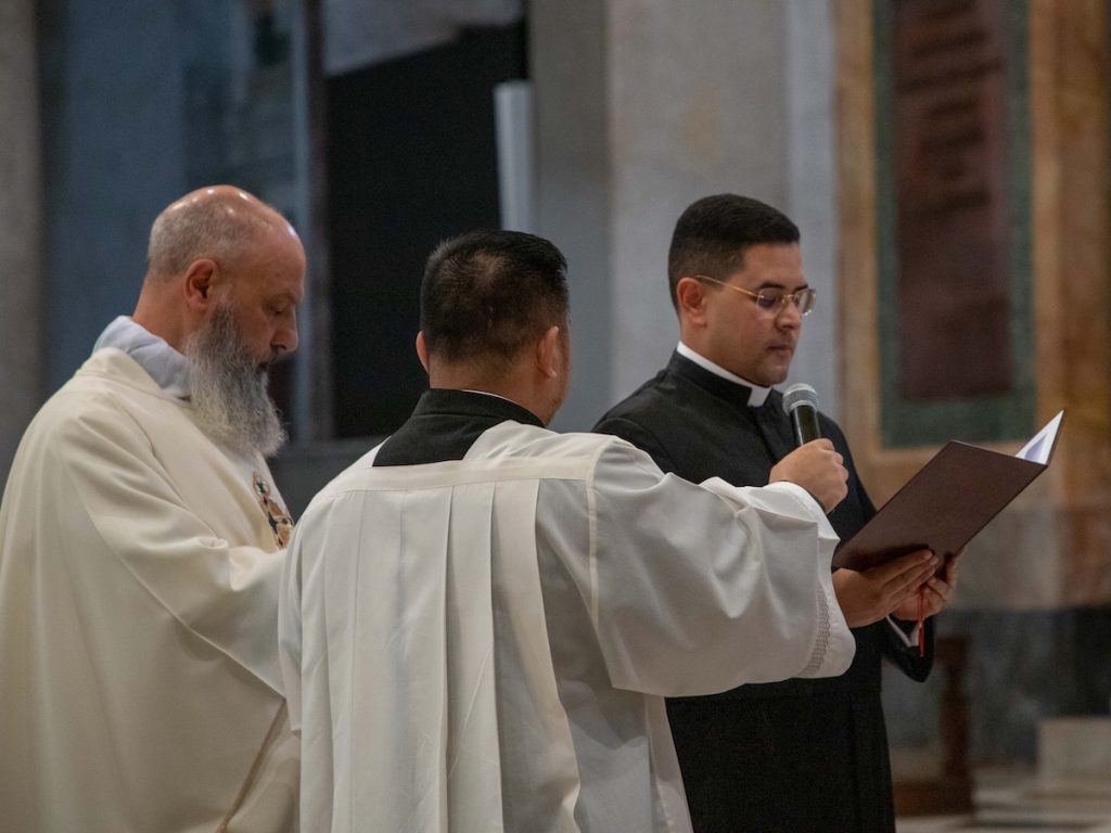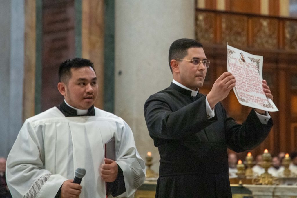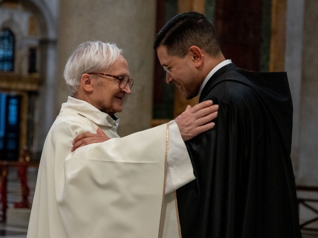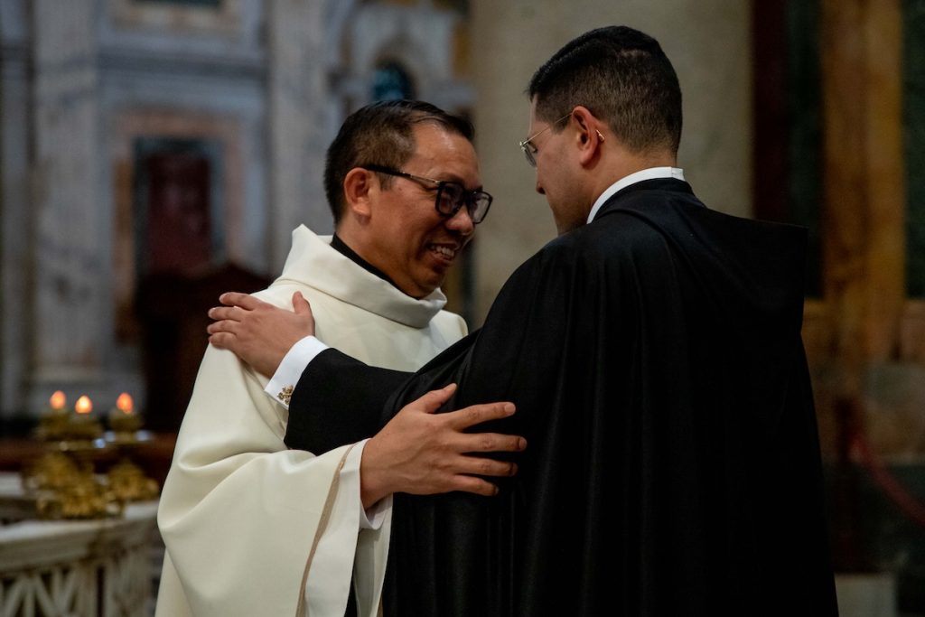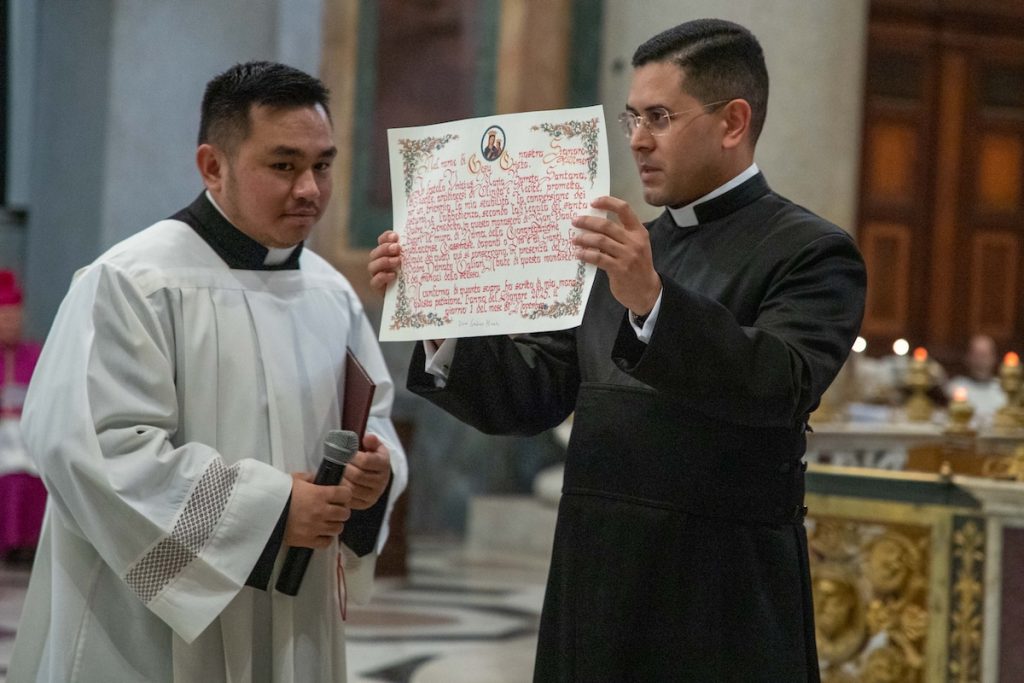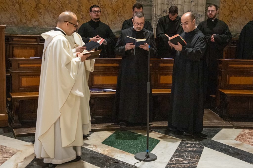 Oggi, con la Professione religiosa, il nostro fratello Vinicius entra a far parte della famiglia monastica benedettina di San Paolo fuori le Mura. Accettando liberamente di seguire il Signore più da vicino e di vivere più strettamente unito a Lui e ai fratelli per il tramite dei tre voti religiosi – che pronuncerà secondo la formulazione tipicamente monastica: stabilità, conversione dei costumi e obbedienza – Vinicius manifesterà pubblicamente il suo desiderio di cercare Dio nella e con la nostra comunità monastica, mettendo in pratica il duplice comandamento dell’amore al Signore e al prossimo, sia all’interno del cerchio fraterno sia al di fuori di esso.