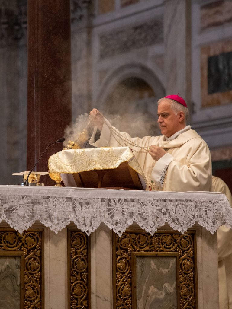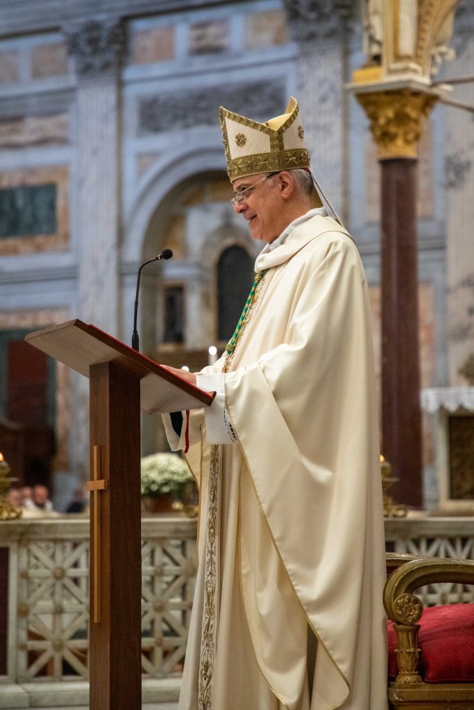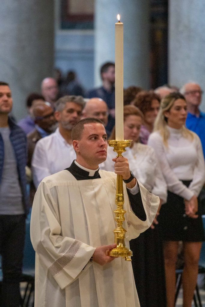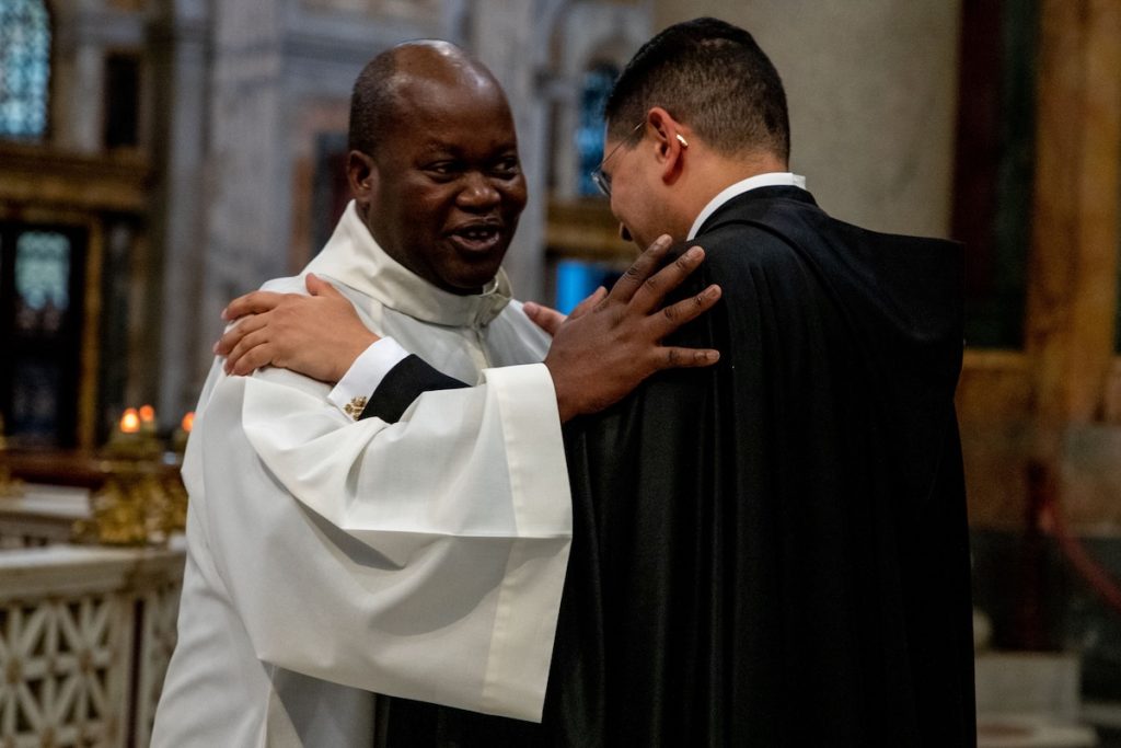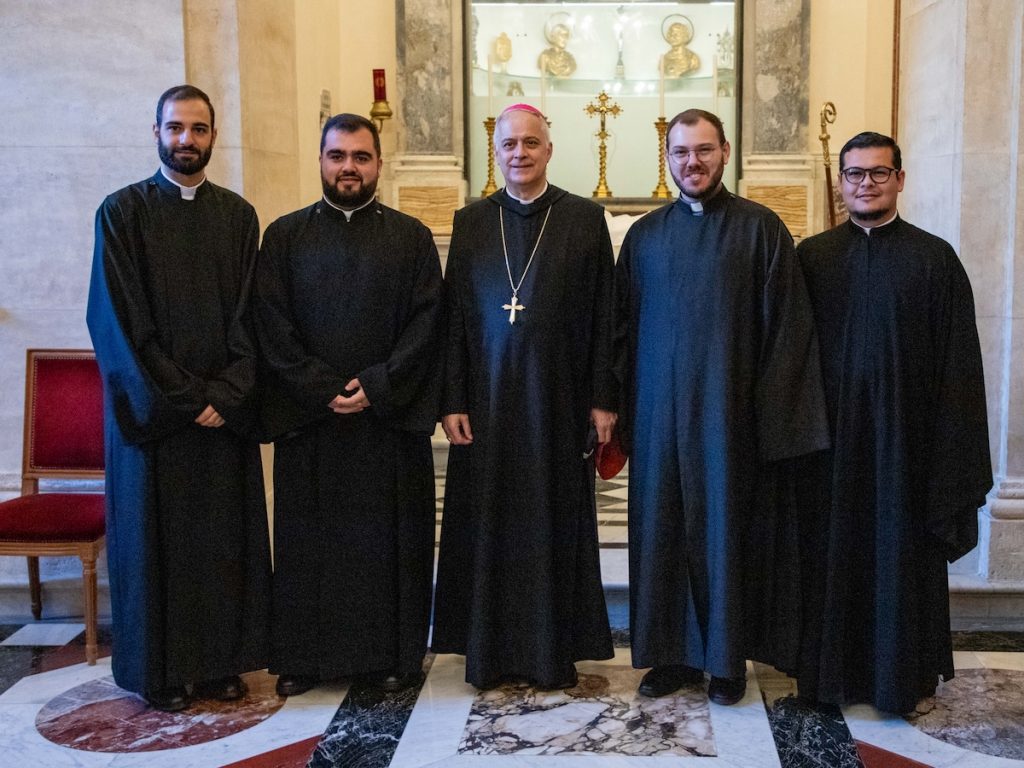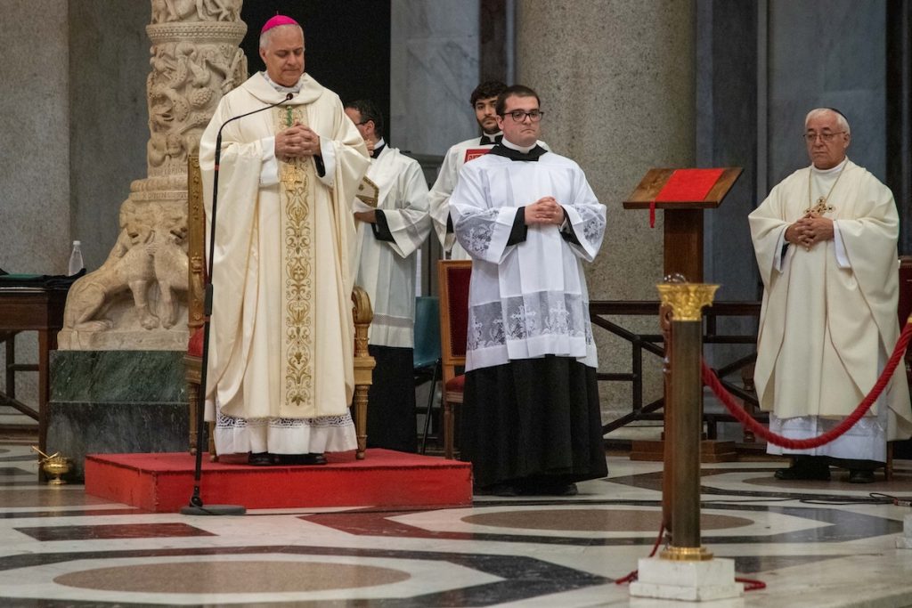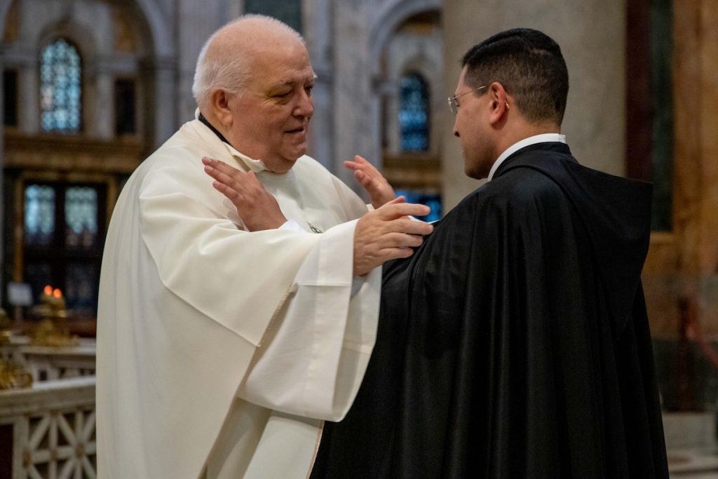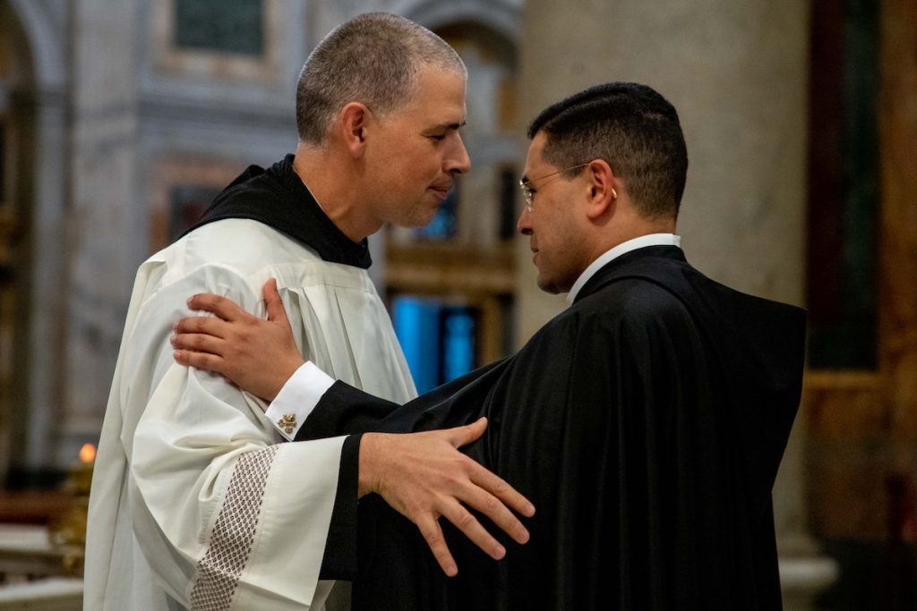 Oggi, con la Professione religiosa, il nostro fratello Vinicius entra a far parte della famiglia monastica benedettina di San Paolo fuori le Mura. Accettando liberamente di seguire il Signore più da vicino e di vivere più strettamente unito a Lui e ai fratelli per il tramite dei tre voti religiosi – che pronuncerà secondo la formulazione tipicamente monastica: stabilità, conversione dei costumi e obbedienza – Vinicius manifesterà pubblicamente il suo desiderio di cercare Dio nella e con la nostra comunità monastica, mettendo in pratica il duplice comandamento dell’amore al Signore e al prossimo, sia all’interno del cerchio fraterno sia al di fuori di esso.