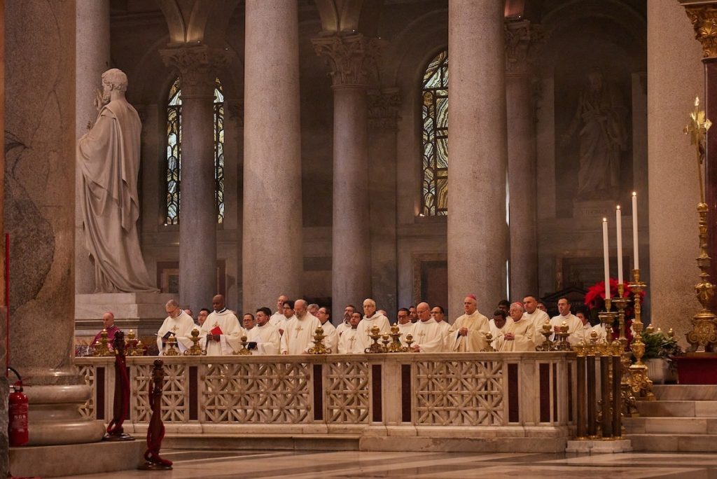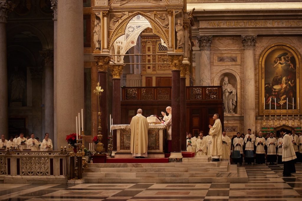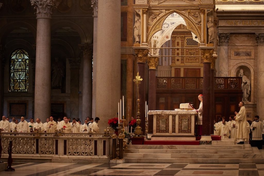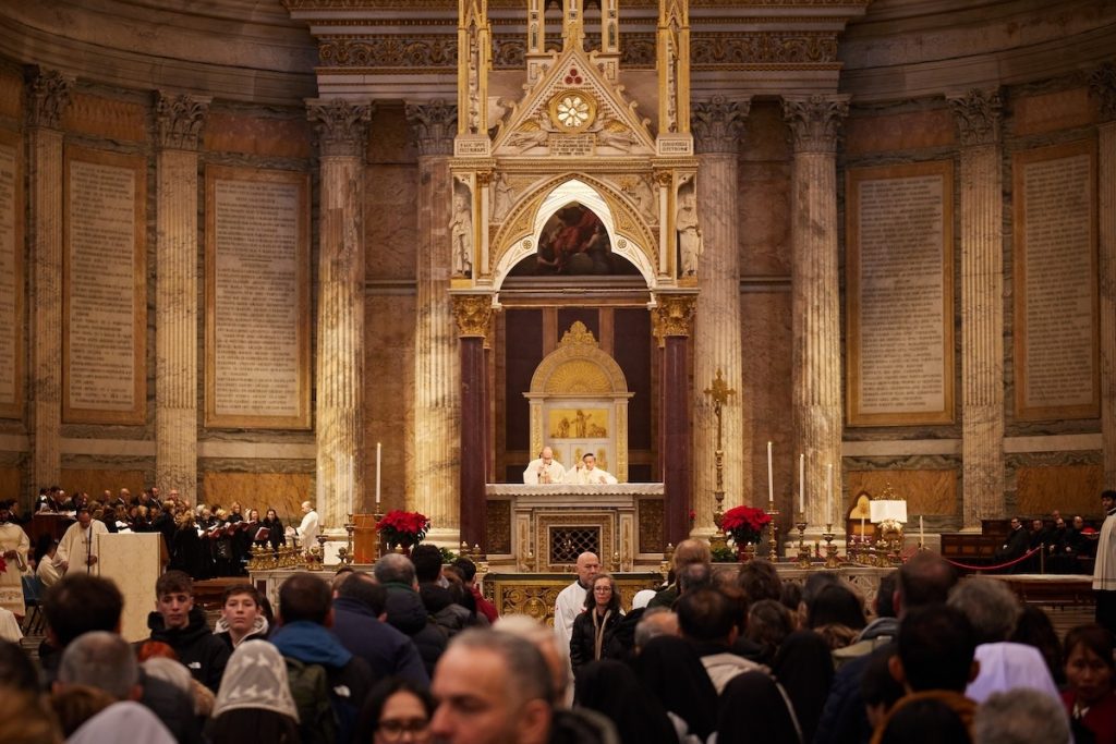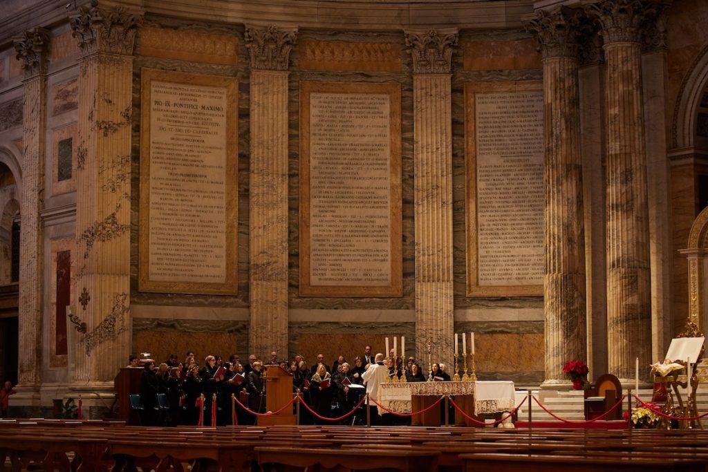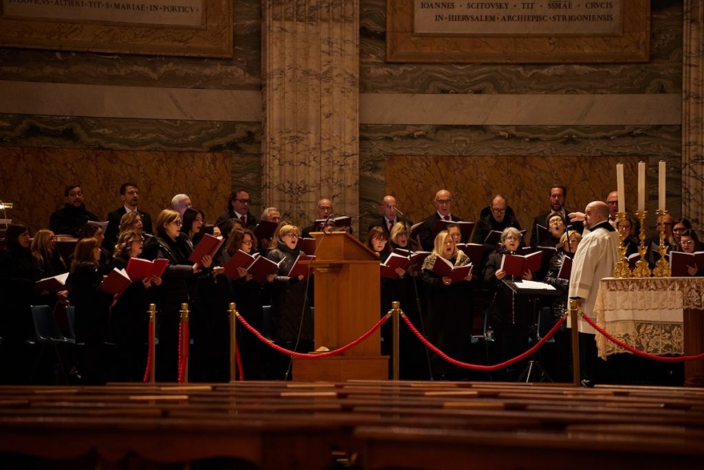 Il Coro Liturgico Polifonico, il Coro “D. Isidoro” e il Coro gregoriano dei laici diretti dal Maestro Christian Alejandro Almada hanno animato una partecipatissima Celebrazione che ha visto chiudersi un anno in cui la Basilica -e la Comunità monastica benedettina che se ne occupa- hanno accolto migliaia e migliaia di pellegrini giunti nella città eterna con profonda fede e devozione.