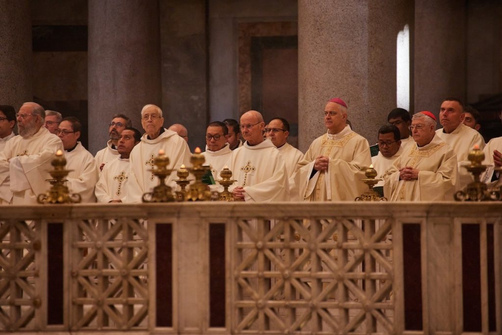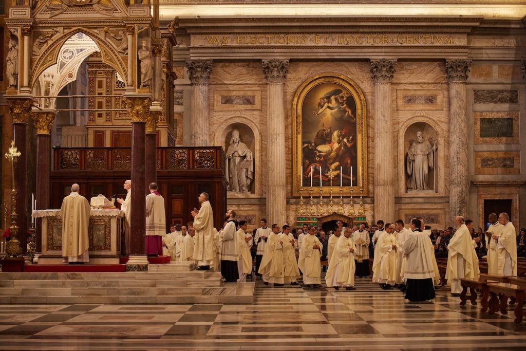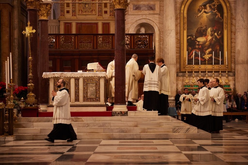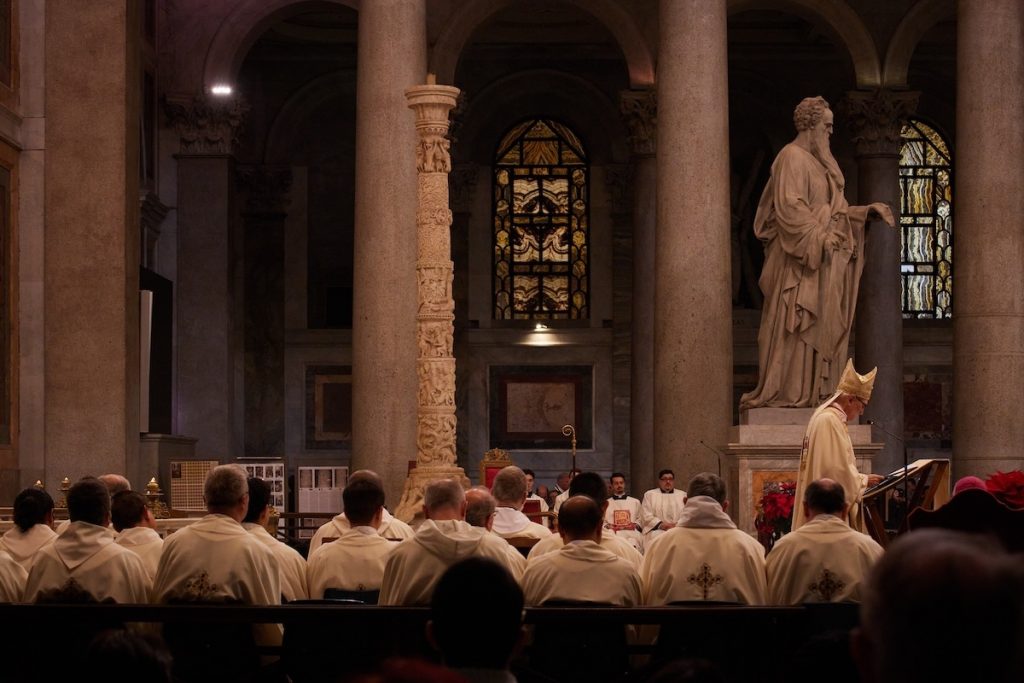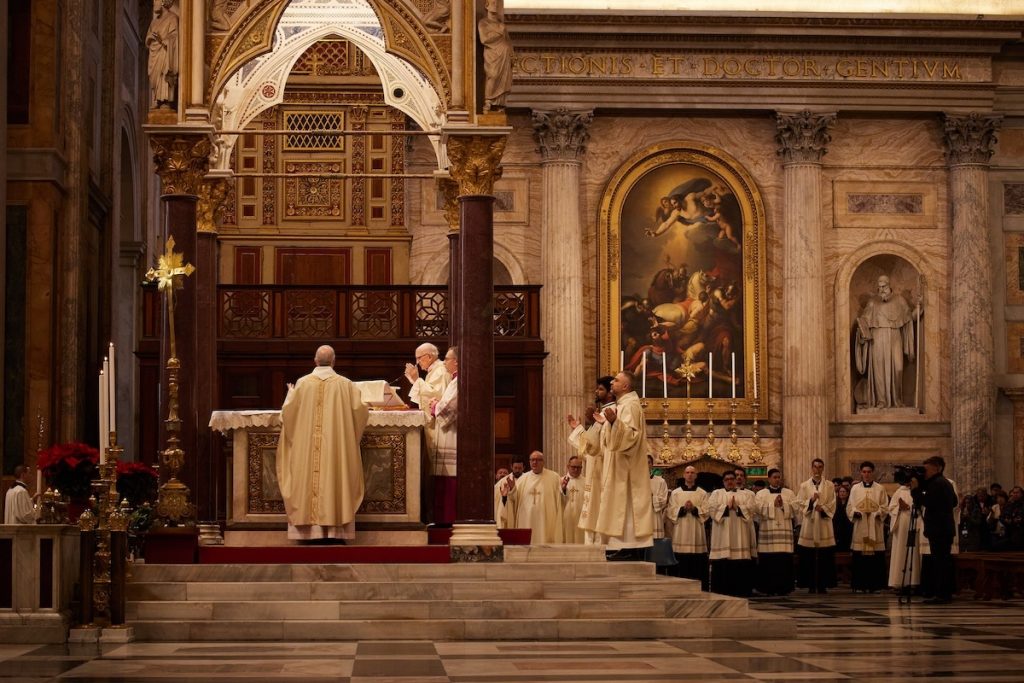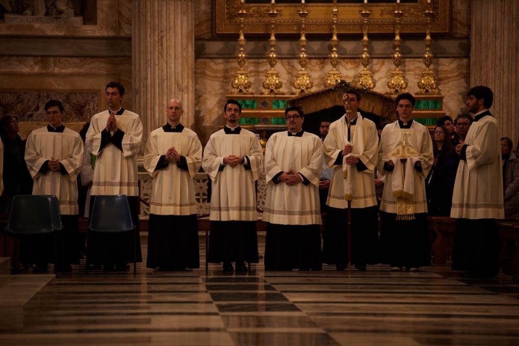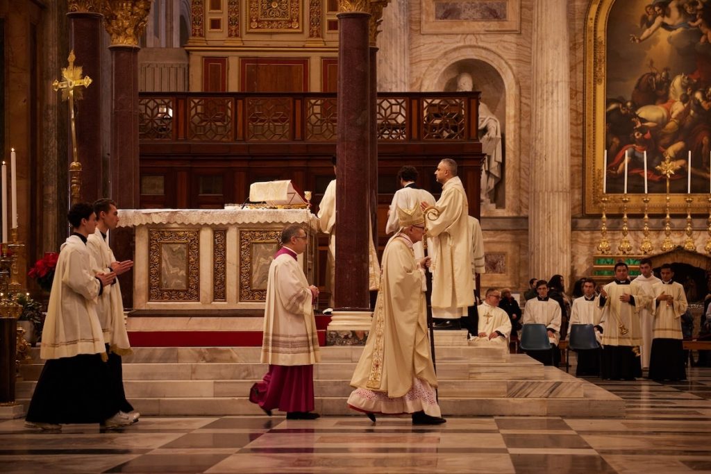 Il Coro Liturgico Polifonico, il Coro “D. Isidoro” e il Coro gregoriano dei laici diretti dal Maestro Christian Alejandro Almada hanno animato una partecipatissima Celebrazione che ha visto chiudersi un anno in cui la Basilica -e la Comunità monastica benedettina che se ne occupa- hanno accolto migliaia e migliaia di pellegrini giunti nella città eterna con profonda fede e devozione.