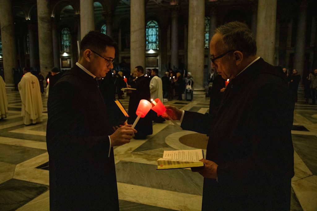 Nel suo “Nunc dimittis” – ossia con le parole «Ora puoi lasciare, o Signore, che il tuo serva vada in pace… perché i miei occhi han visto la tua salvezza, luce per illuminare le genti…» – il vecchio Simeone canta la speranza del popolo di Israele che, finalmente, ha trovato il suo compimento in quel bambino presentato al tempio da Maria e Giuseppe. Quel bambino – come dice Simeone nel prenderlo tra le braccia – è la “luce” venuta a illuminare le genti.