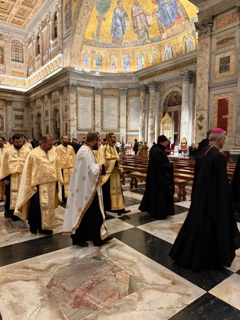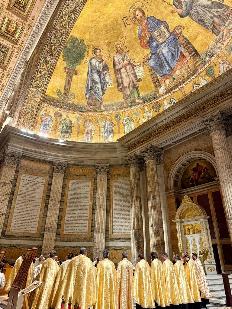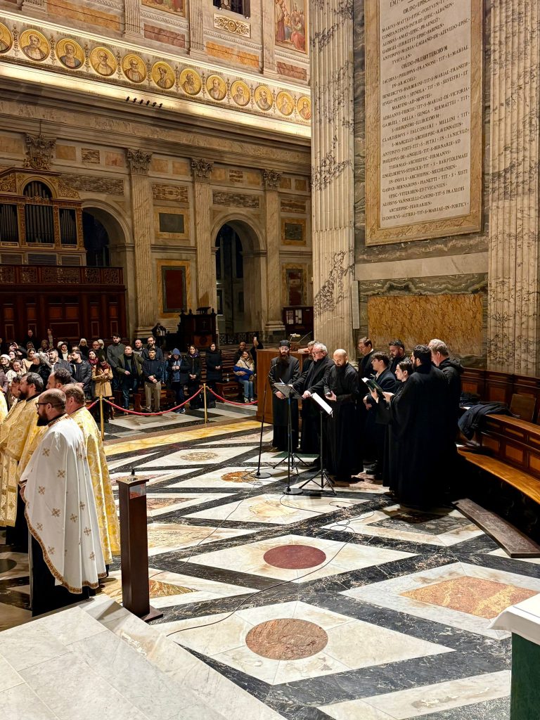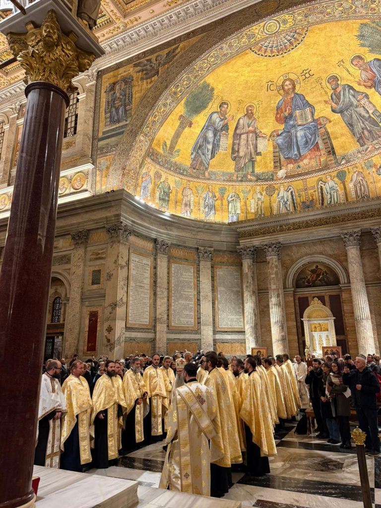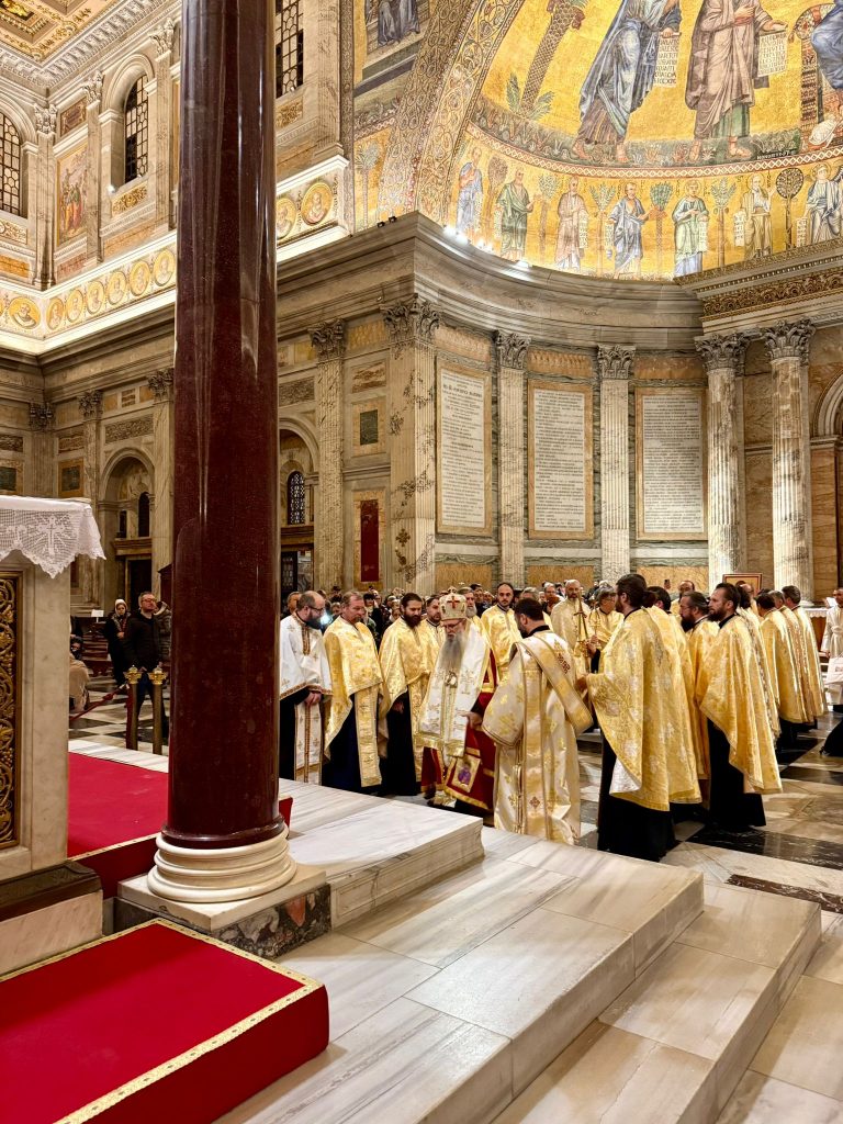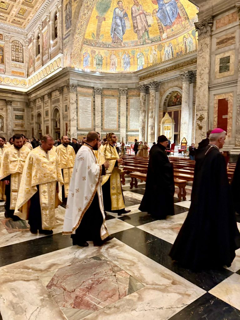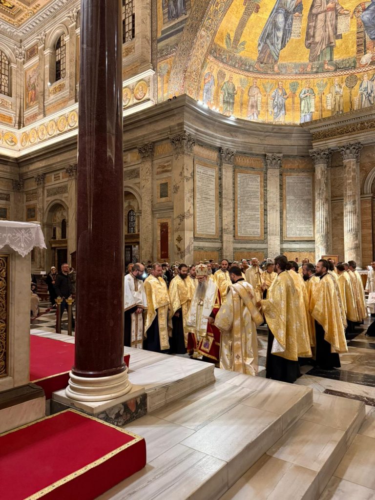 Nel pomeriggio, alle ore 18.00, la Basilica ha accolto la celebrazione dei Vespri con la Diocesi Ortodossa Romena d’Italia, presieduti da Sua Ecc.za Rev.ma Siluan, Vescovo, concelebrati con la Comunità Monastica Benedettina di San Paolo fuori le Mura, guidata dal Rev.mo Abate Dom Donato Ogliari, alla presenza di S. Em. Rev.ma Cardinale James Michael Harvey, Arciprete della Basilica Papale.