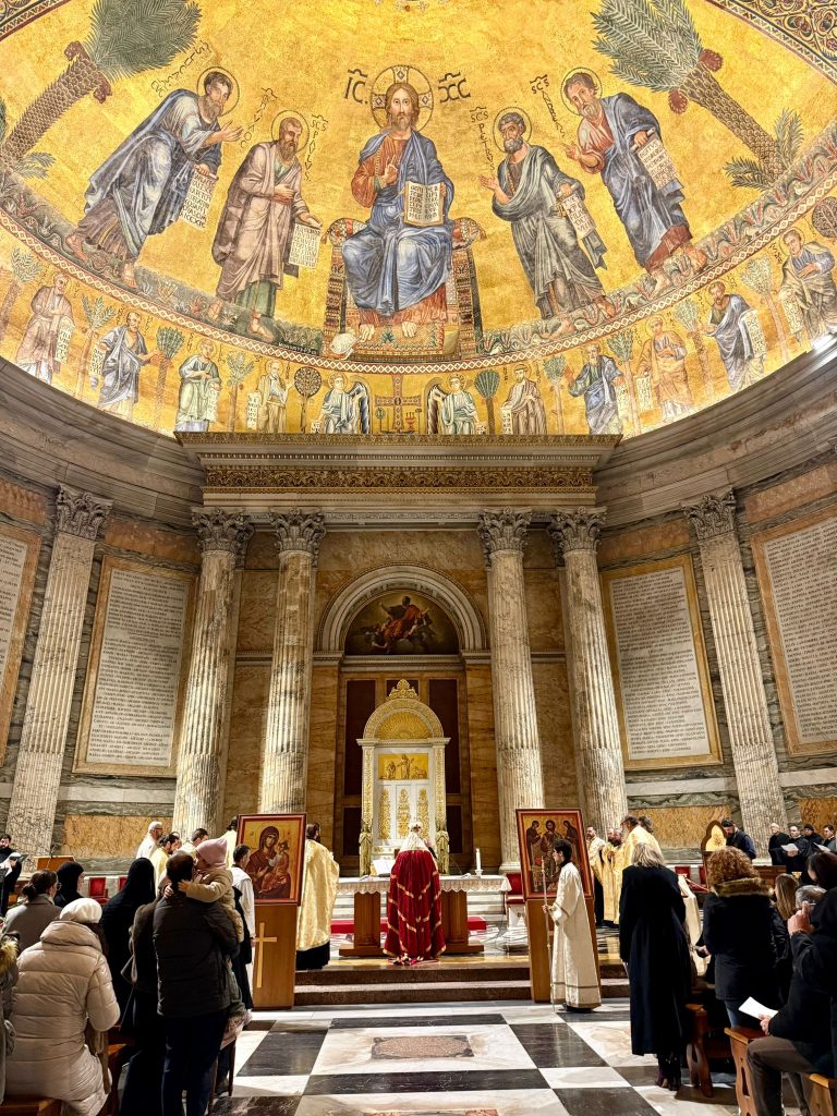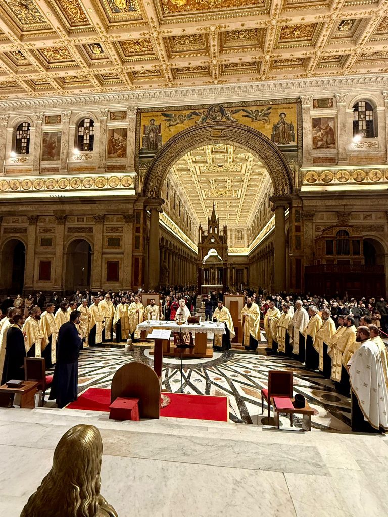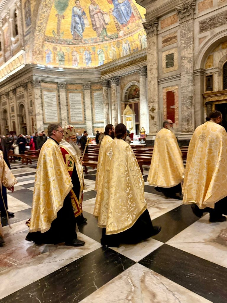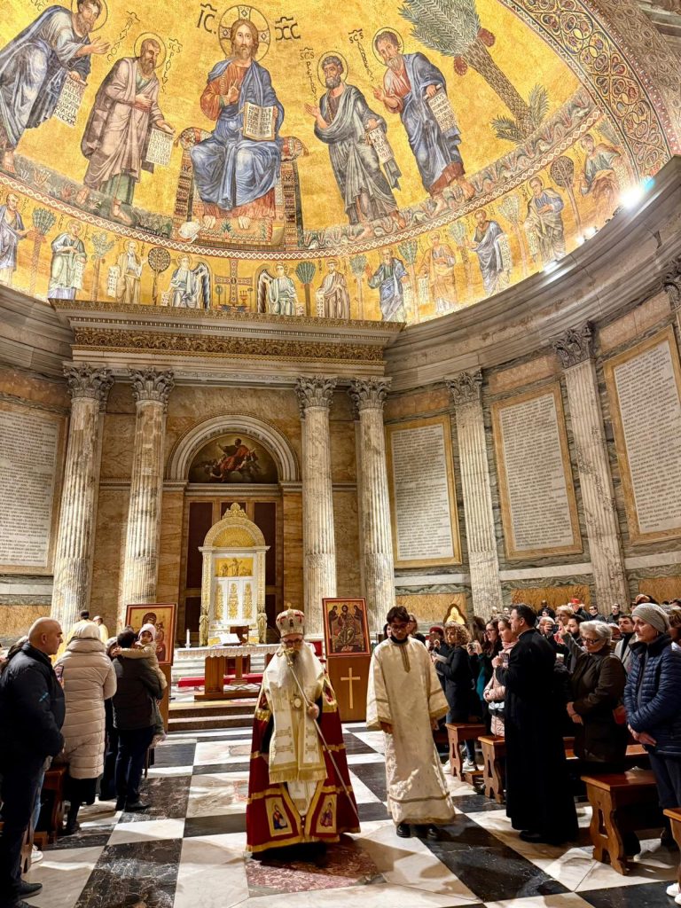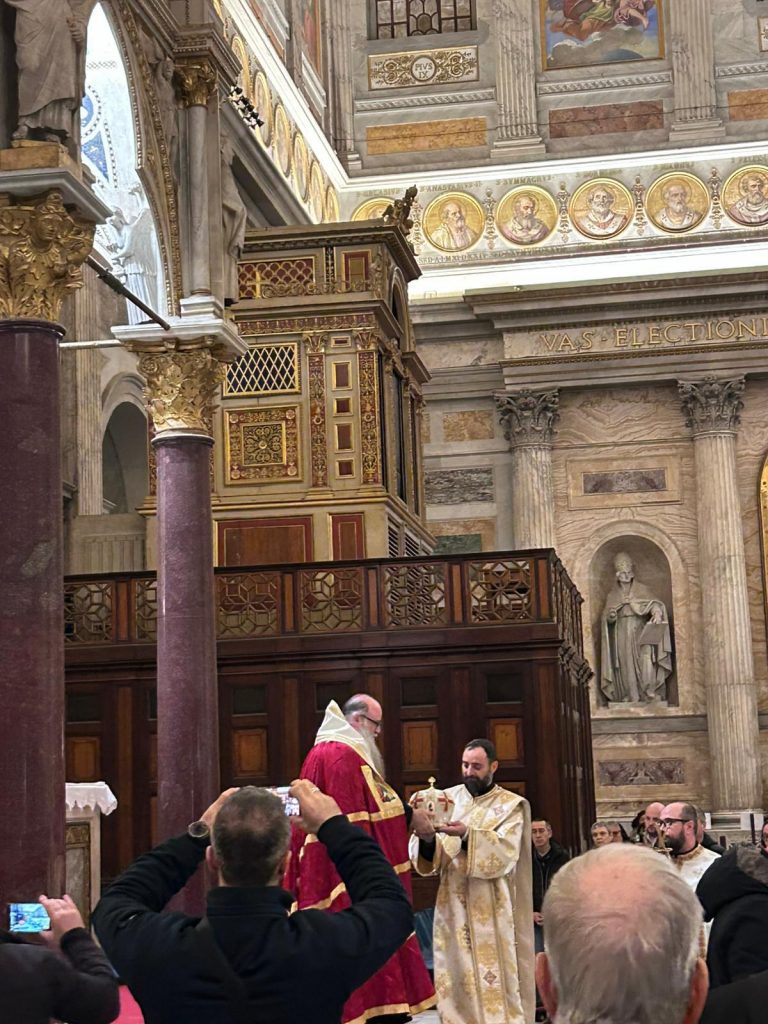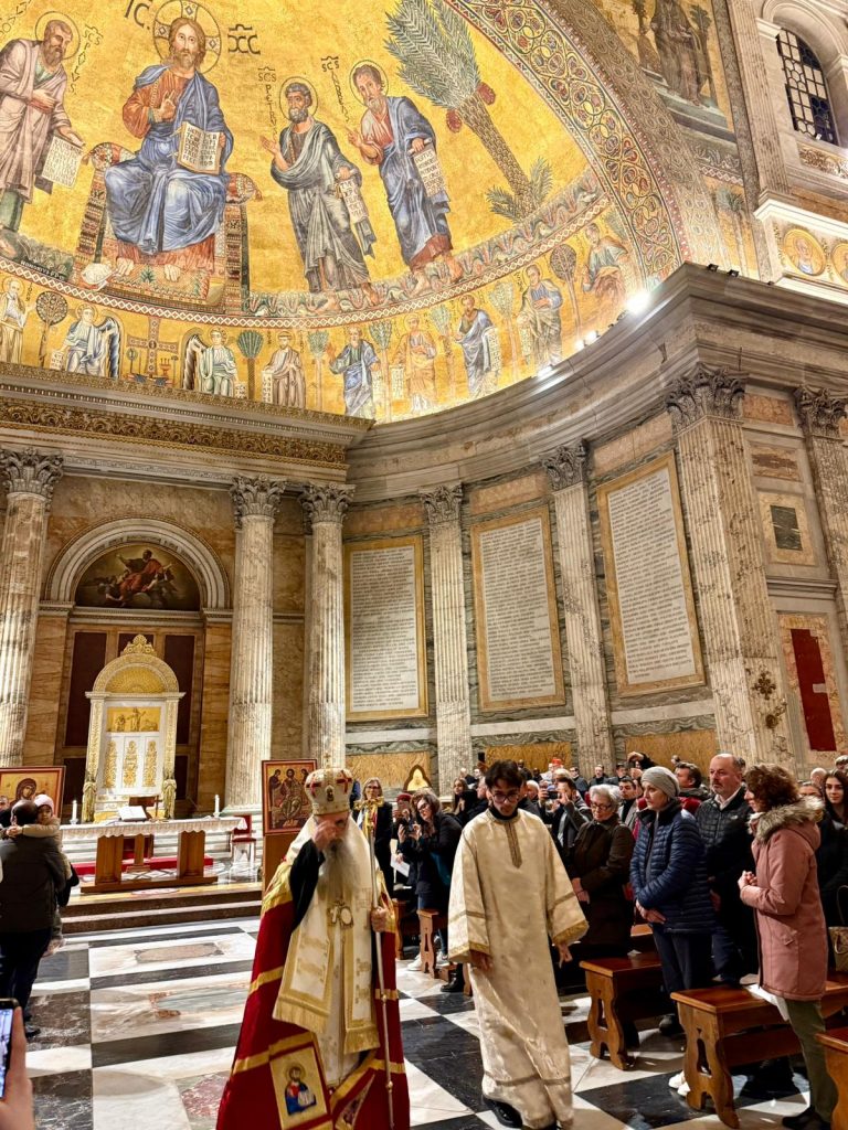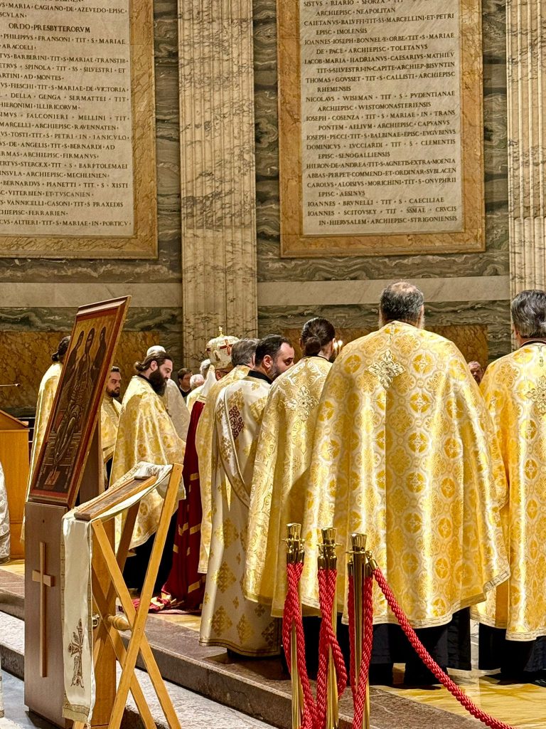 Nel pomeriggio, alle ore 18.00, la Basilica ha accolto la celebrazione dei Vespri con la Diocesi Ortodossa Romena d’Italia, presieduti da Sua Ecc.za Rev.ma Siluan, Vescovo, concelebrati con la Comunità Monastica Benedettina di San Paolo fuori le Mura, guidata dal Rev.mo Abate Dom Donato Ogliari, alla presenza di S. Em. Rev.ma Cardinale James Michael Harvey, Arciprete della Basilica Papale.