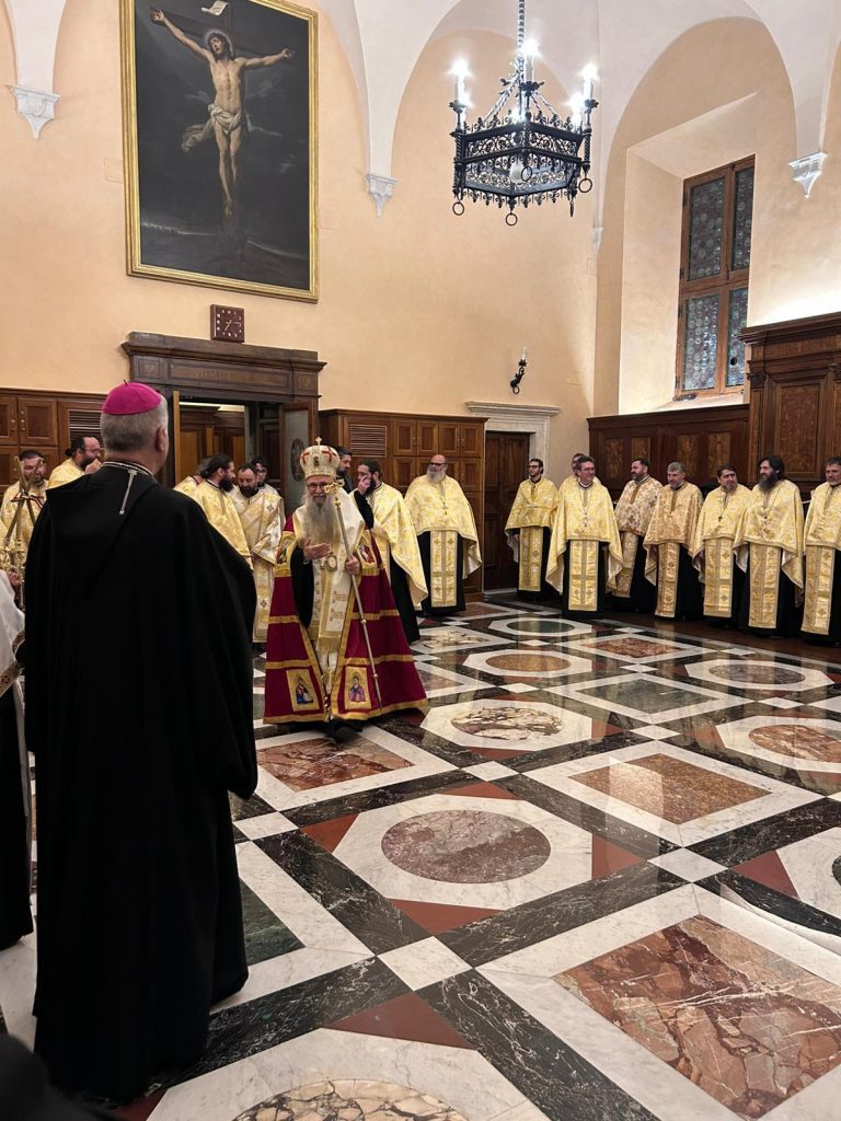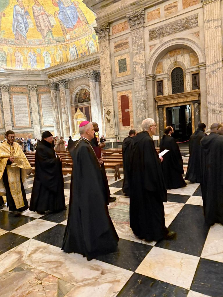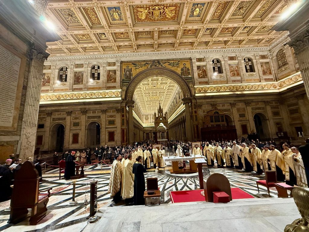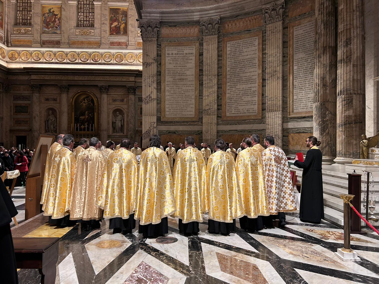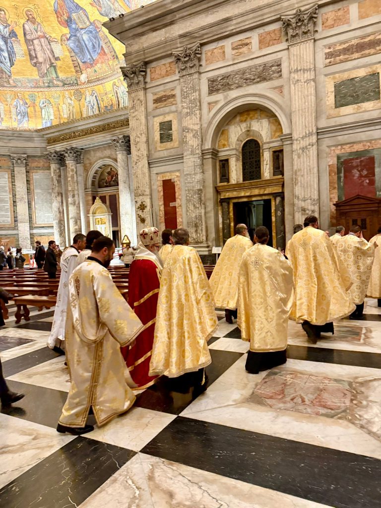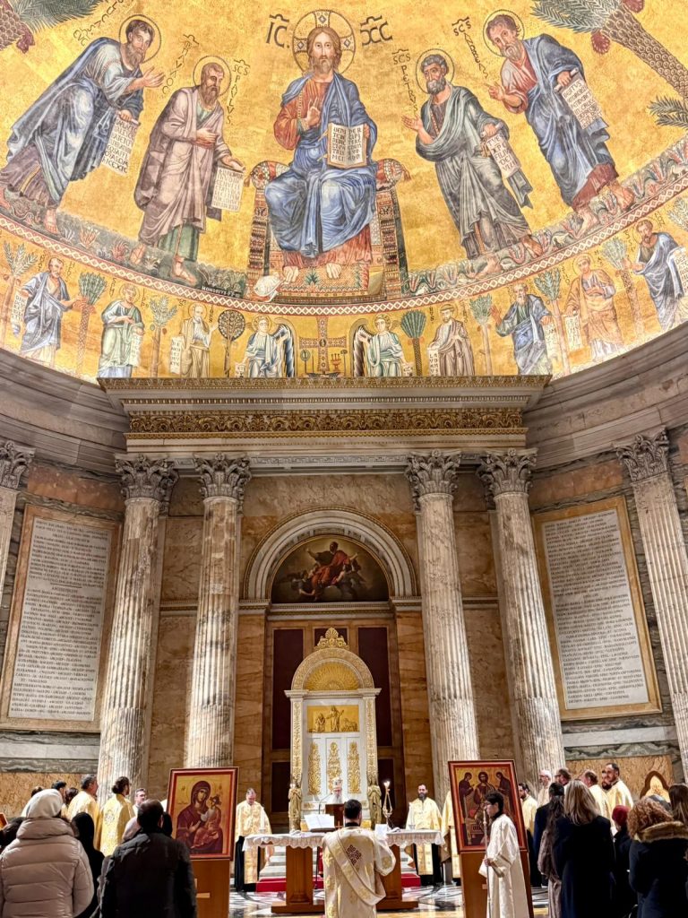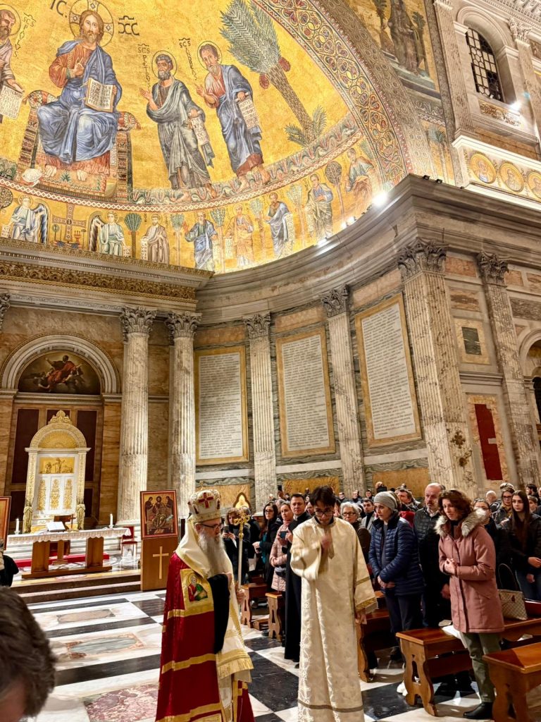 Nel pomeriggio, alle ore 18.00, la Basilica ha accolto la celebrazione dei Vespri con la Diocesi Ortodossa Romena d’Italia, presieduti da Sua Ecc.za Rev.ma Siluan, Vescovo, concelebrati con la Comunità Monastica Benedettina di San Paolo fuori le Mura, guidata dal Rev.mo Abate Dom Donato Ogliari, alla presenza di S. Em. Rev.ma Cardinale James Michael Harvey, Arciprete della Basilica Papale.