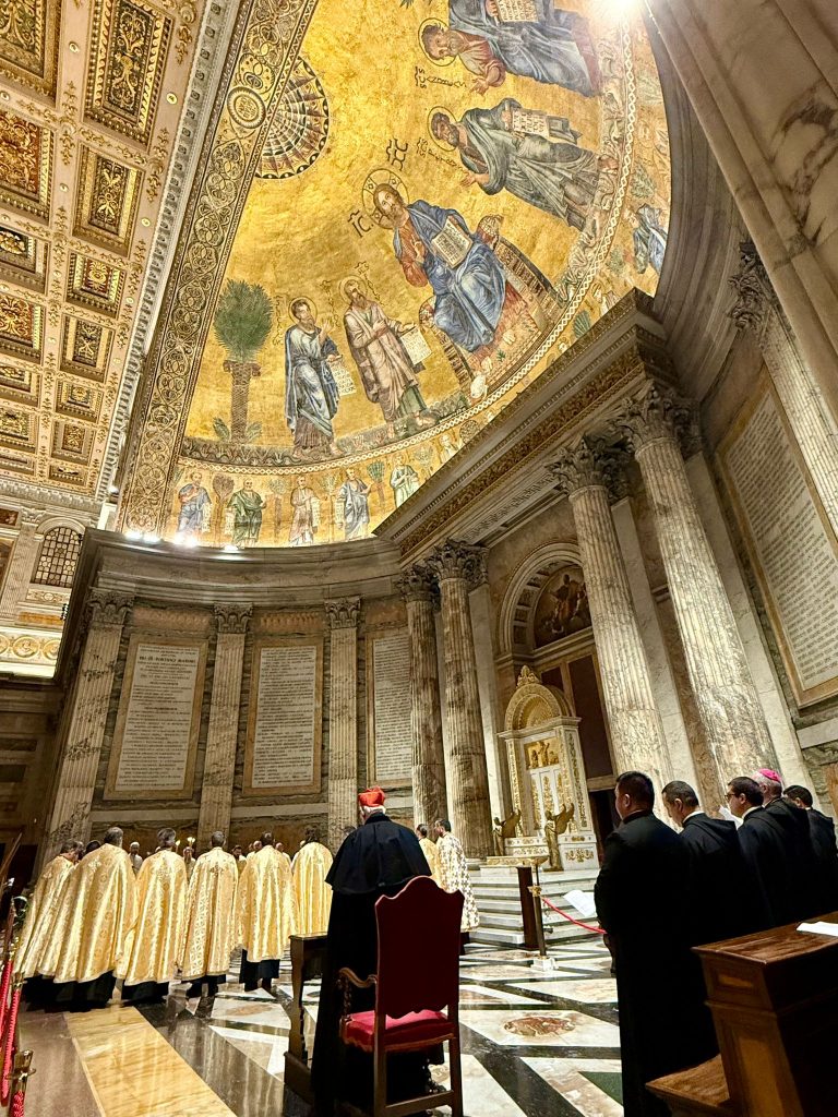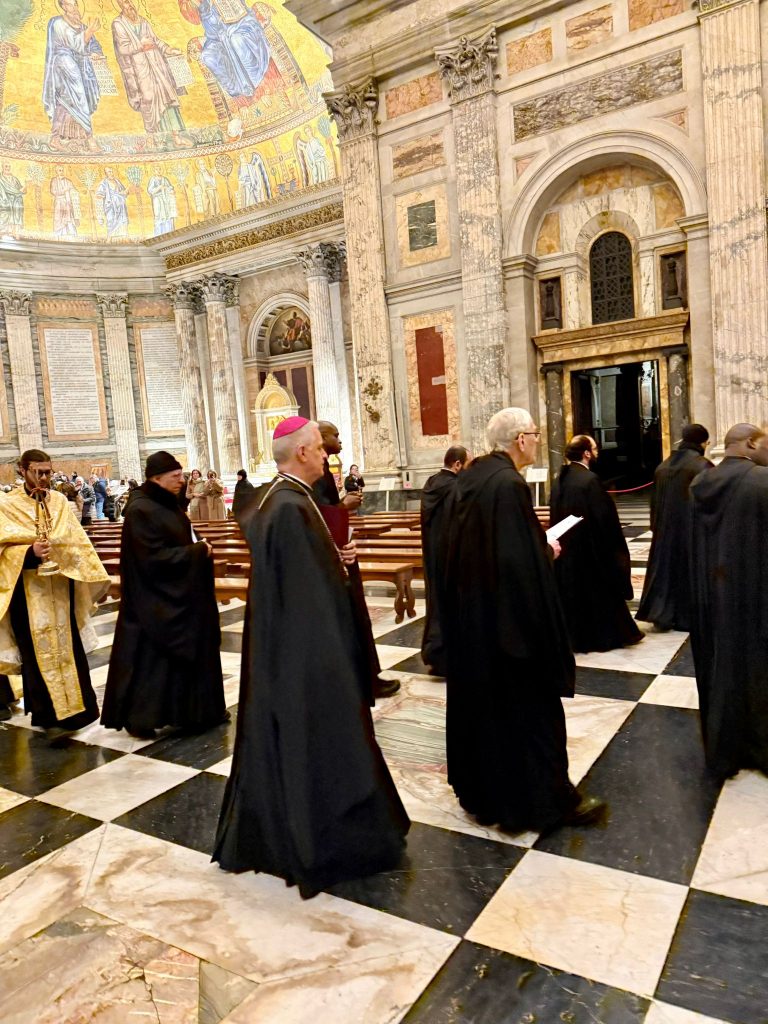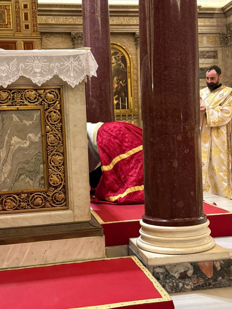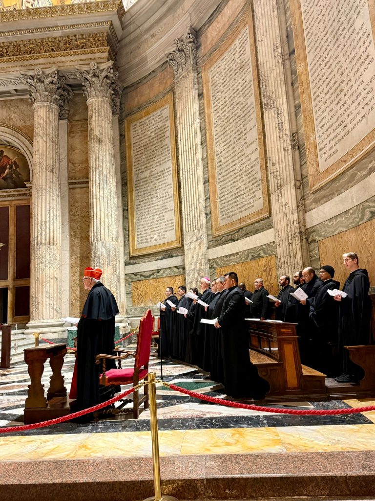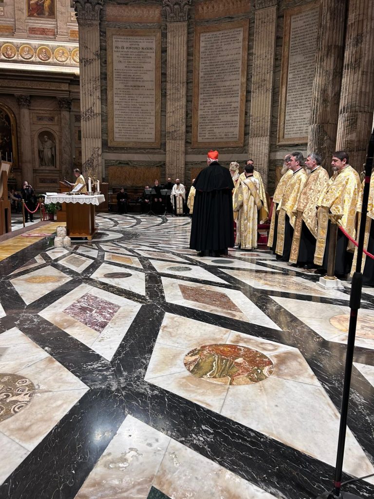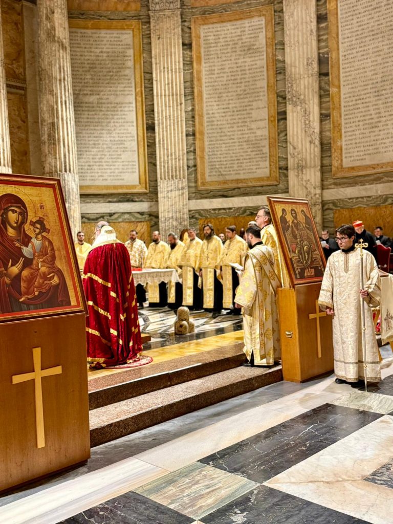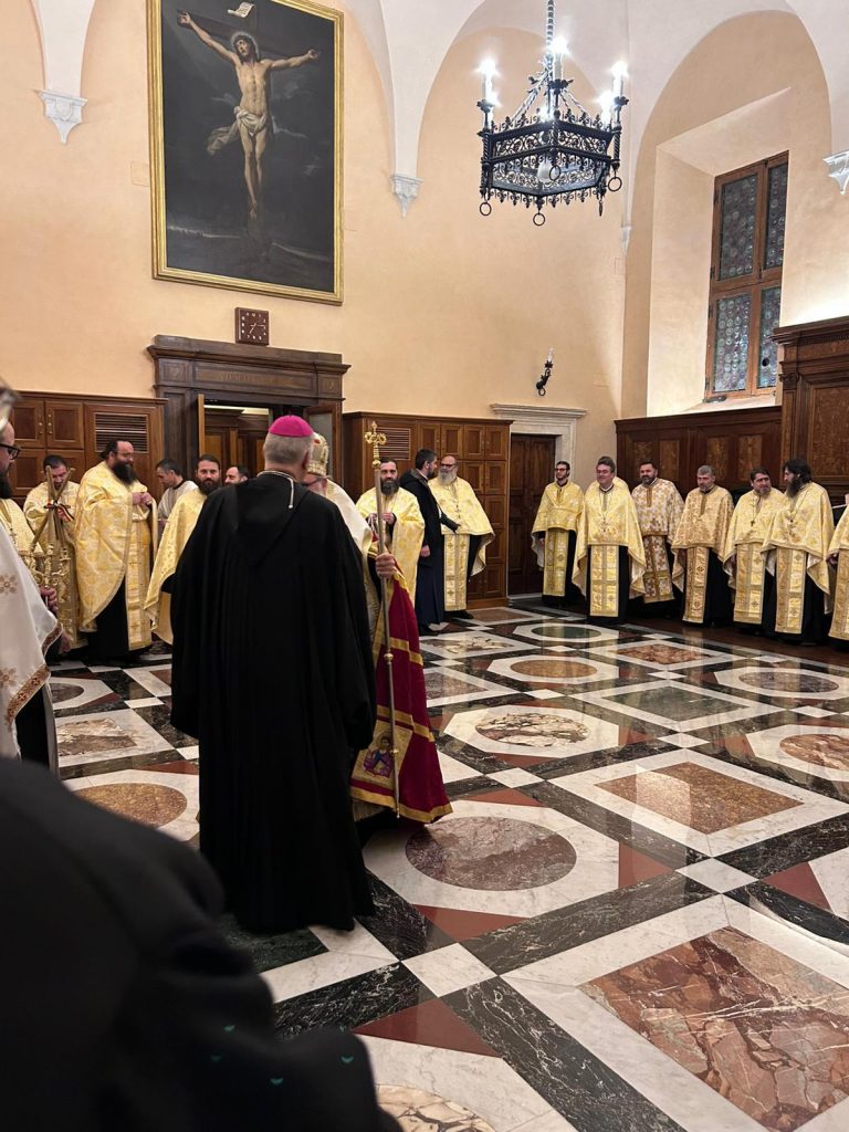 Nel pomeriggio, alle ore 18.00, la Basilica ha accolto la celebrazione dei Vespri con la Diocesi Ortodossa Romena d’Italia, presieduti da Sua Ecc.za Rev.ma Siluan, Vescovo, concelebrati con la Comunità Monastica Benedettina di San Paolo fuori le Mura, guidata dal Rev.mo Abate Dom Donato Ogliari, alla presenza di S. Em. Rev.ma Cardinale James Michael Harvey, Arciprete della Basilica Papale.