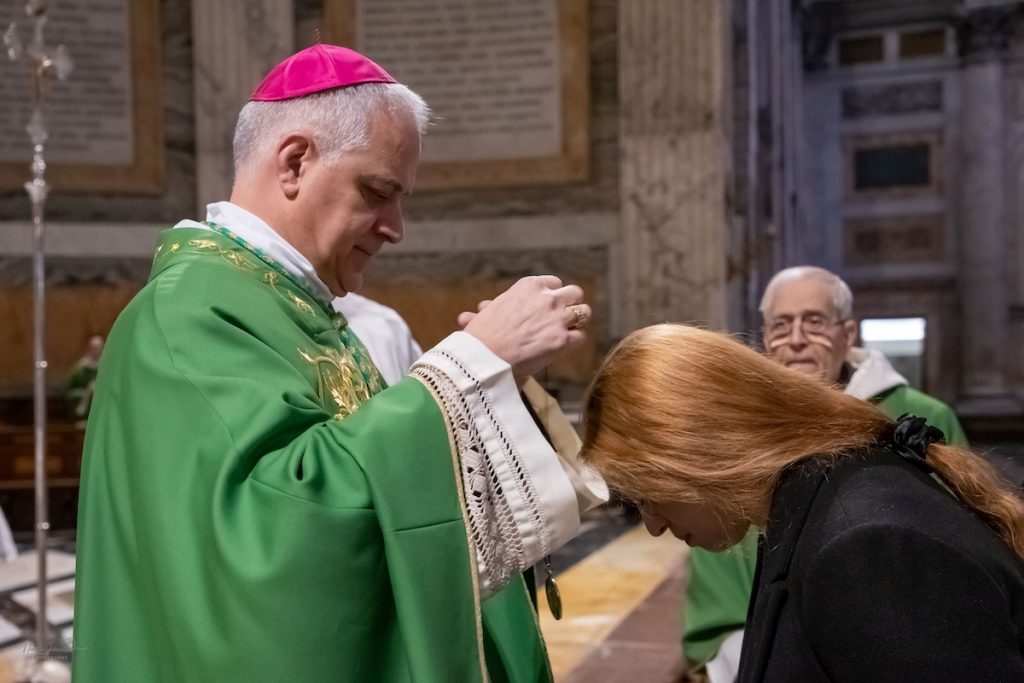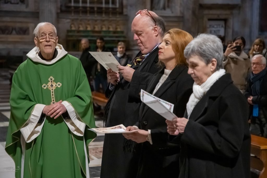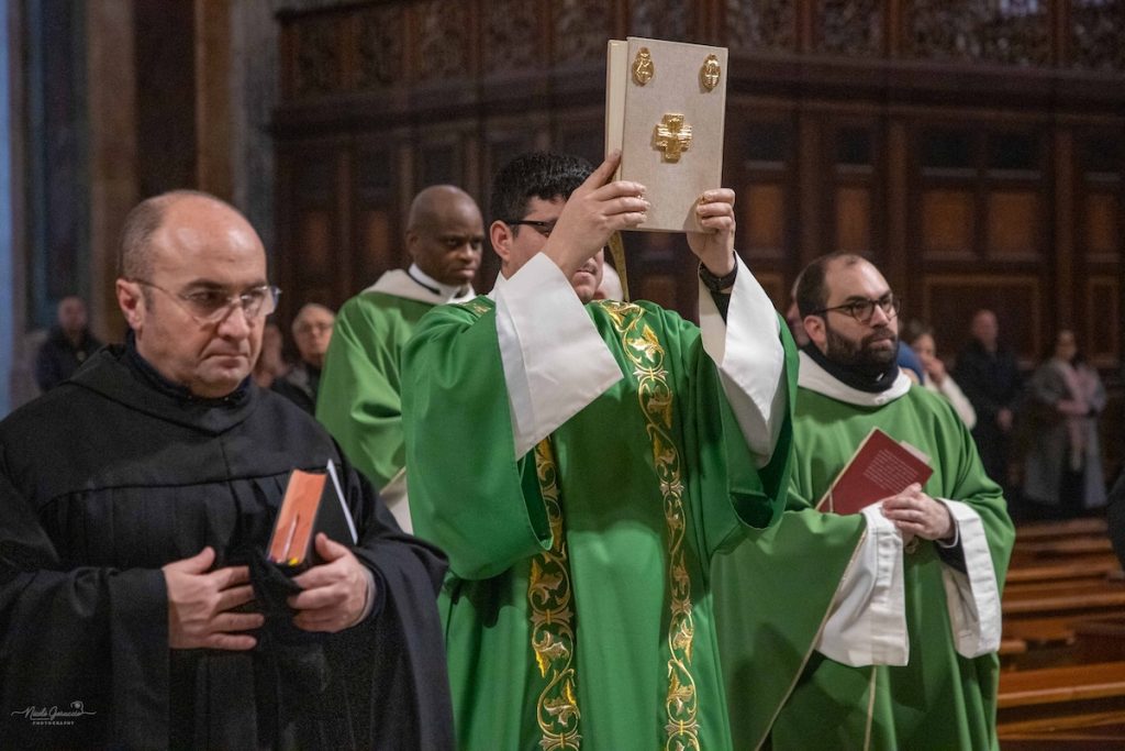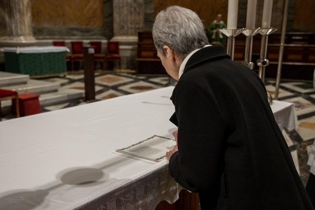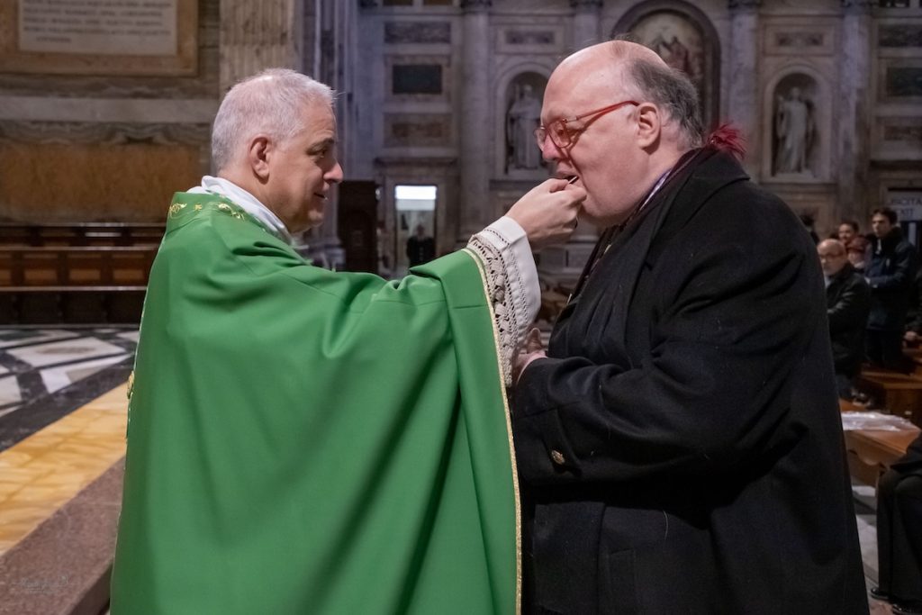 Nel chinarci sulla Parola evangelica appena proclamata è soprattutto a voi, cari Anna, Rossella e Martin, che mi rivolgo; a voi che tra poco emetterete la vostra Oblazione secolare nella Famiglia monastica benedettina di San Paolo fuori le Mura. Questo passo che vi accingete a compiere non è un gesto formale, ma racchiude il vostro desiderio di impegnarvi a vivere il Vangelo nel cuore del mondo ispirandovi alla Regola di San Benedetto.